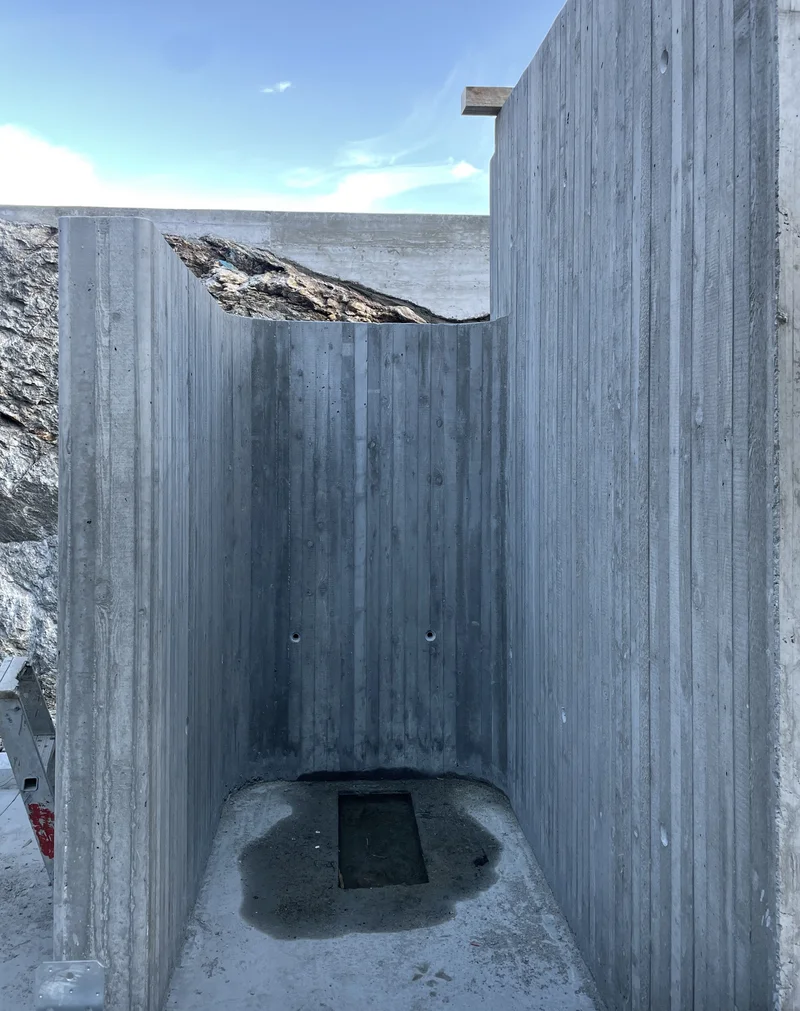 Terrihütte, 'Frischduschen' während dem Bau © Architekturbüro Caminada